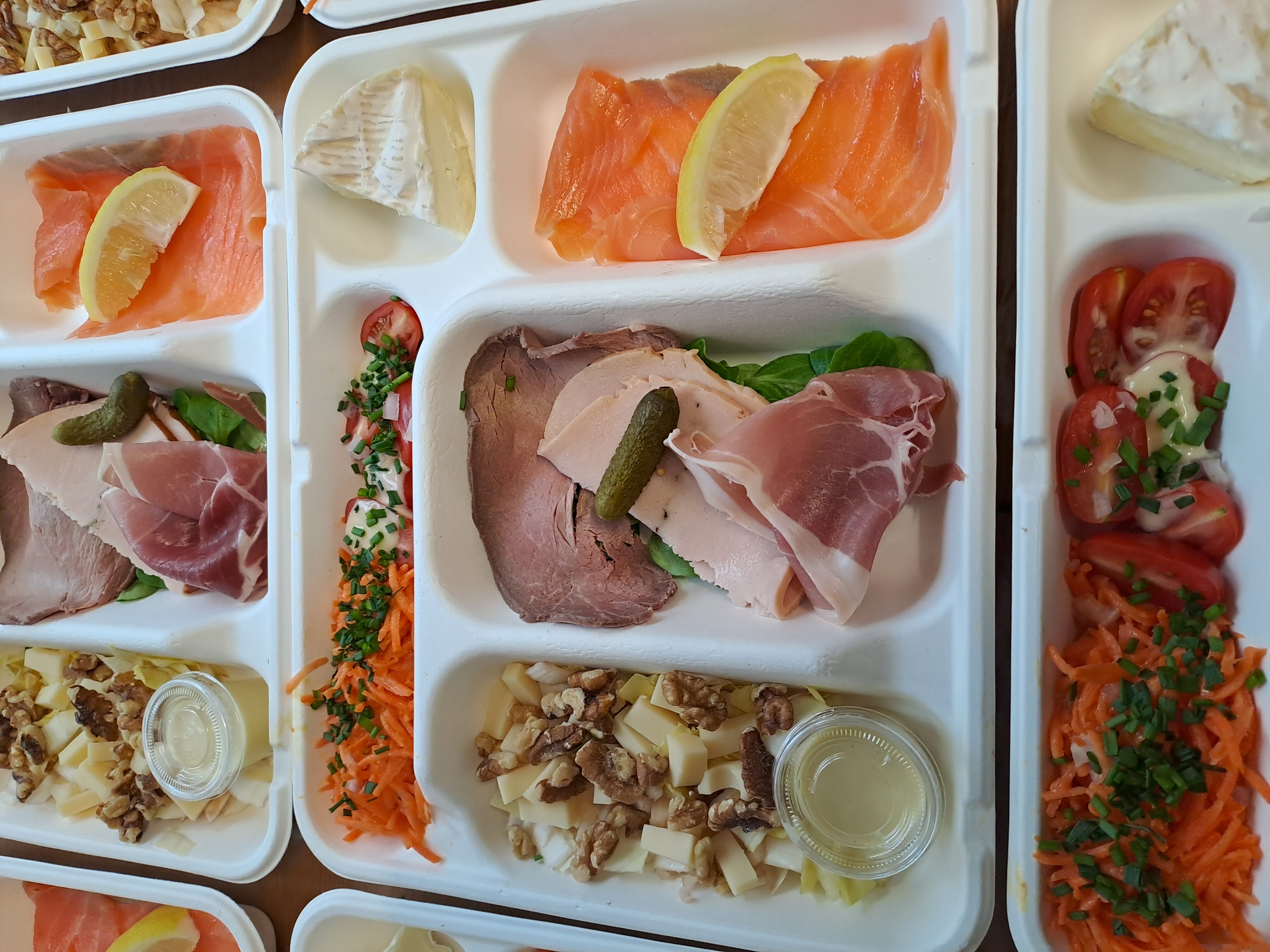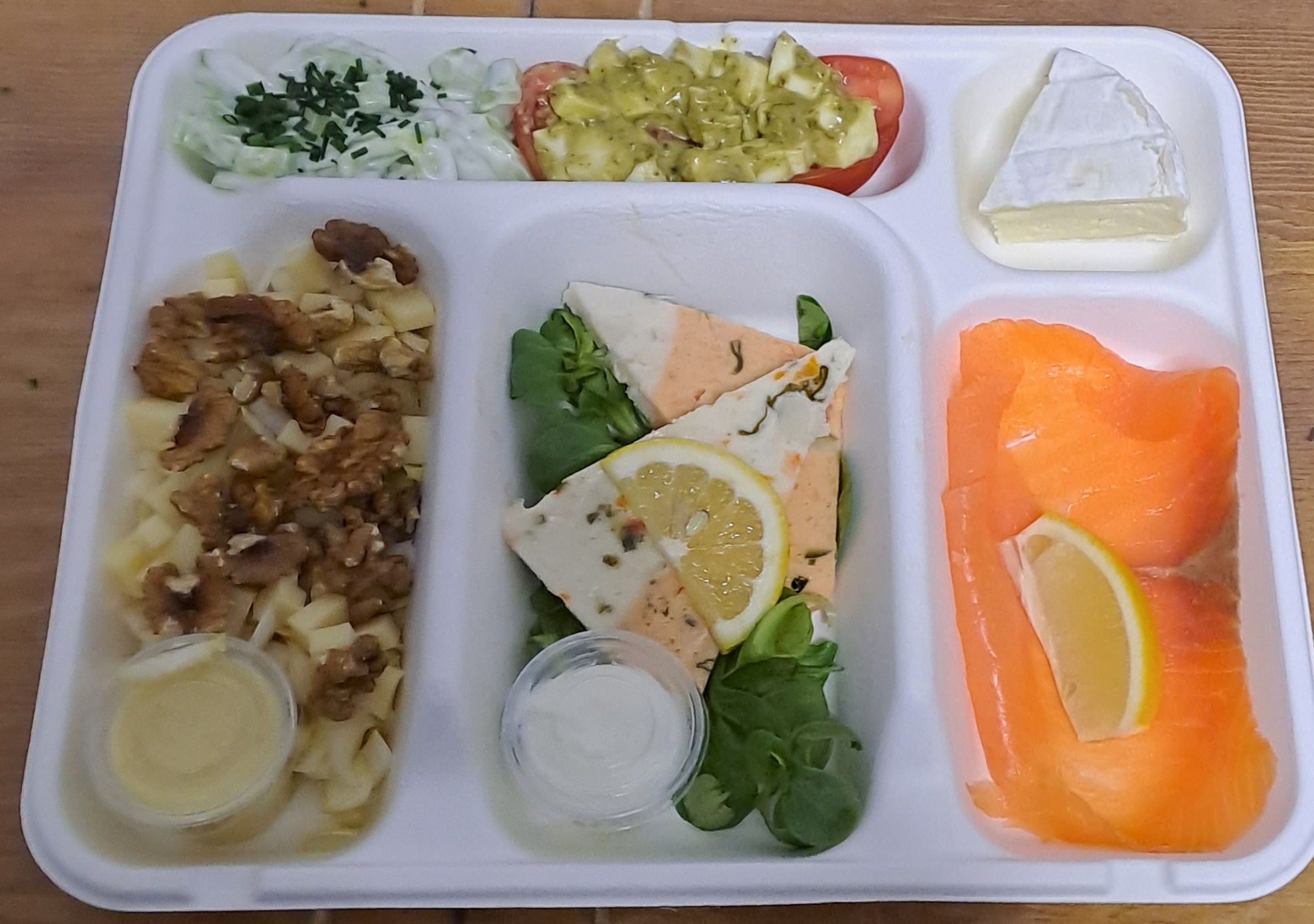Salade de magret fumé (mache, magret fumé, crouton, oeuf poché)